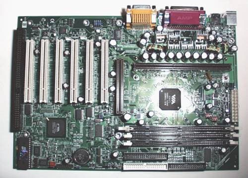 Плата имеет 6 слотов PCI — рекорд среди протестированных нами плат. Их наличие, а также и наличие одного слота ISA обеспечивает хорошие возможности по расширяемости. Тем не менее, необходимо отметить, что KA7 не имеет никакого интегрированного звукового решения и слота AMR.