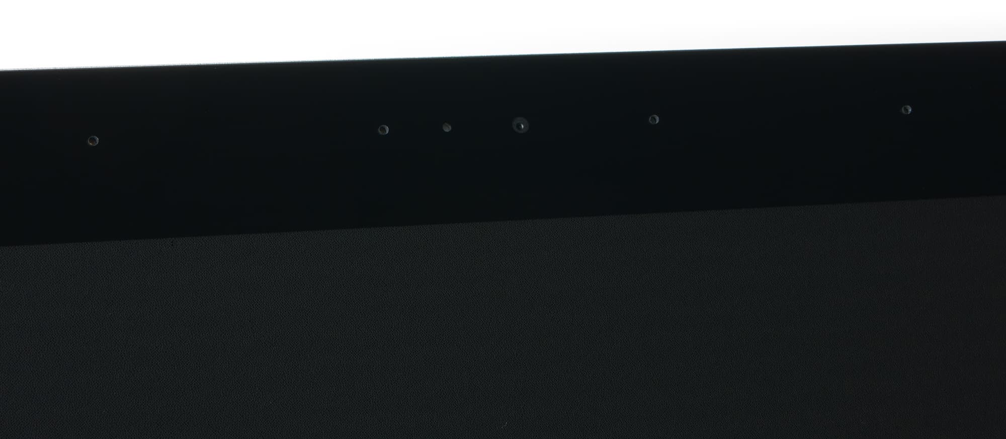 Лицевая поверхность экрана выполнена в виде стеклянной пластины с зеркально-гладкой поверхностью, устойчивой к появлению царапин. Данная поверхность служит основой для датчика прикосновений. Отражение в экране двоится, что предполагает наличие воздушной прослойки между поверхностью матрицы и внешним стеклом. Поверхность самой матрицы под стеклом слегка матовая, поэтому экран отражает как прямые источники света (внешней поверхностью), так и рассеянный свет (поверхностью матрицы), это уменьшает читаемость в условиях сильной внешней засветки. К сожалению, специальный антибликовый фильтр (покрытие) отсутствует, поэтому, особенно на темных участках изображения, пользователь видит отражение предметов, находящихся перед монитором, и себя лично. На внешней поверхности экрана может быть и есть специальное олеофобное (жироотталкивающее) покрытие, но эффективность его низкая, следы от пальцев удаляются с трудом, а появляются очень быстро.