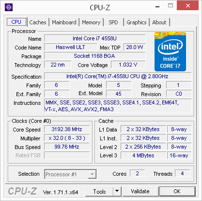 | Процессор | Intel Core i7-4558U | |