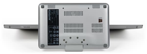 Как уже отмечалось, вся аппаратная начинка моноблока расположена в его массивной подставке. В принципе, подставка разбирается, но делать это нужно аккуратно. Фокус в том, что снимать нужно не нижнюю панель корпуса, а верхнюю, для чего необходимо открутить 8 винтиков на нижней панели, причем четыре винтика закрыты резиновыми ножками, которые нужно сначала аккуратно удалить. Еще одна хитрость в том, что крупные винты, которыми к подставке прикручивается ножка, откручивать не нужно.