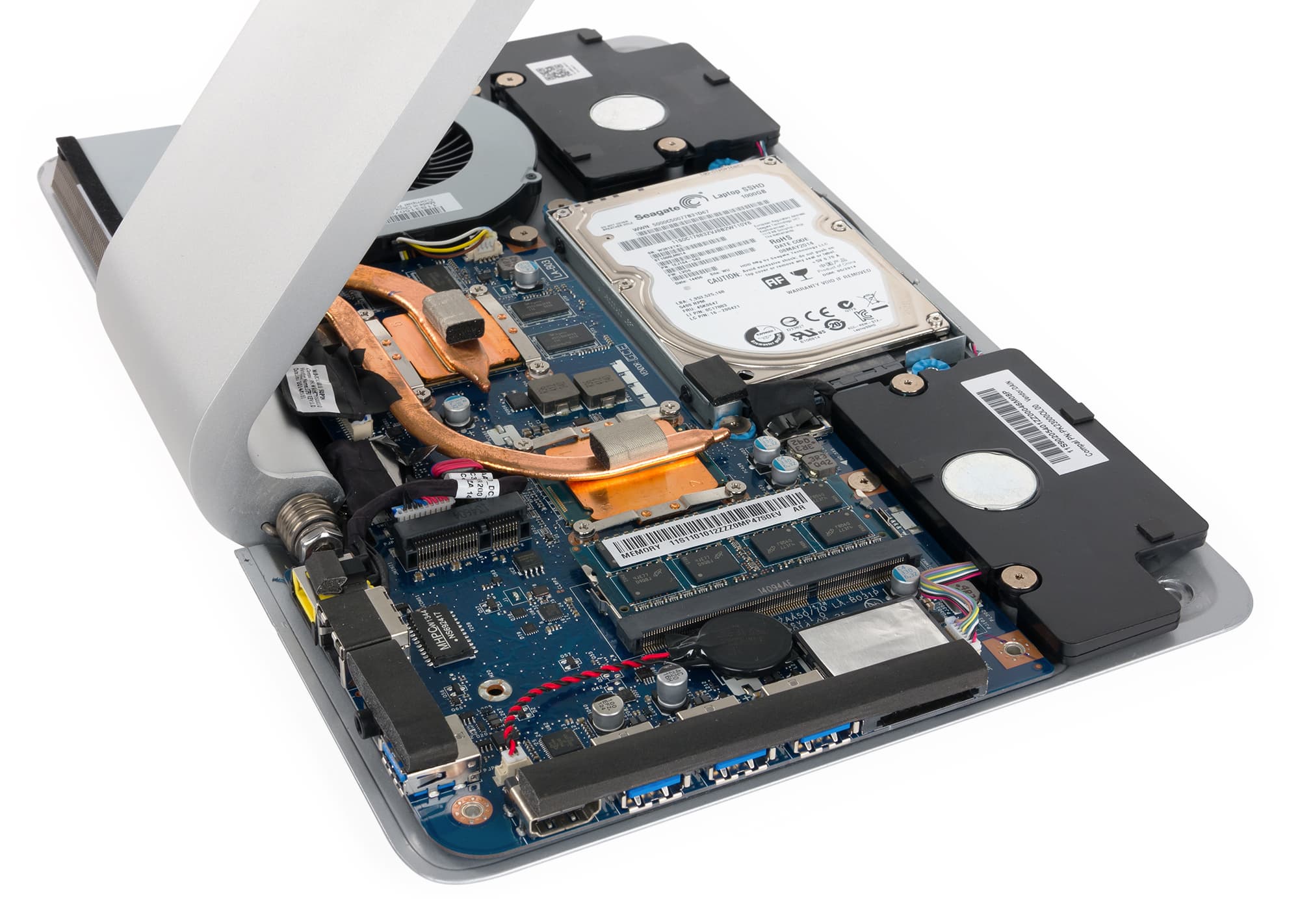 Подсистема хранения данных в моноблоке Lenovo A740 использует один гибридный накопитель SSHD Seagate ST1000LM014-1EJ164 емкостью 1 ТБ. Оптического привода у этой модели не предусмотрено.