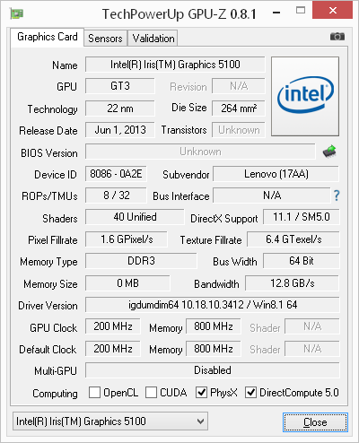 Итак, как видно по спецификации моноблока Lenovo A740, в его основе — классическая ноутбучная платформа на базе мобильного процессора Intel Core i7-4558U. Это двухъядерный процессор (четыре логических ядра с учетом технологии Hyper-Threading) с номинальной тактовой частотой 2,8 ГГц, которая в режиме Turbo Boost может повышаться до 3,3 ГГц. Размер его кэша L3 составляет 4 МБ, а TDP — 28 Вт. В этот процессор интегрировано графическое ядро Intel Iris Graphics 5100, базовая частота которого составляет 200 МГц, а частота в режиме Turbo Boost — 1,2 ГГц. В зависимости от конкретной модели моноблоки Lenovo A740 могут комплектоваться вместо этого процессорами Intel Core i5-4258U.