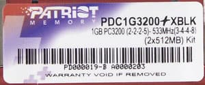 - Память: 2x512 МБ Patriot DDR-400+XBLK (в режиме DDR-400)