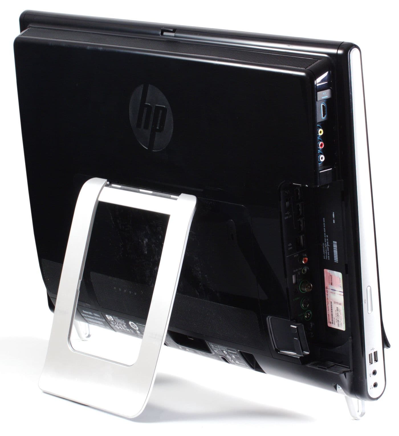 Практически все моноблоки имеют одинаковую схему установки: две вертикальные ноги под корпусом и сзади подставка, дающая третью точку опоры. Она же задает угол вертикального отклонения корпуса. У НР решение более-менее изящное: ножки закруглены снизу, т. e. когда откидываешь монитор, не возникает ощущения, как от качающегося на двух ножках стула.