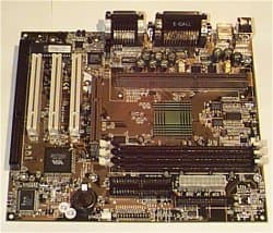 TomatoBoard BX98 — AT-системная плата на чипсете VIA Apollo Pro от печально известного производителя. Имеет 4 слота PCI, 3 — DIMM, 2 слота ISA, один из которых разделяемый, и слот AGP. Полный набор внешних частот 66, 75, 83, 100, 103, 112, 124 и 133 МГц доступен к установке через Setup BIOS. К сожалению, плата не продемонстрировала стабильную работу. Имелись проблемы с видеокартой на чипсете i740 и периодически случались зависания системы. В общем, я ничего другого от TomatoBoard не ожидал.