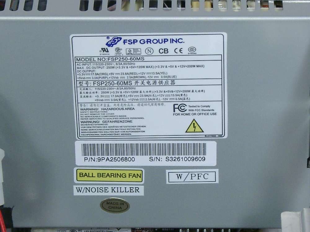 - Внешний БП: FSP Group Inc, 250 Вт (маркировка)