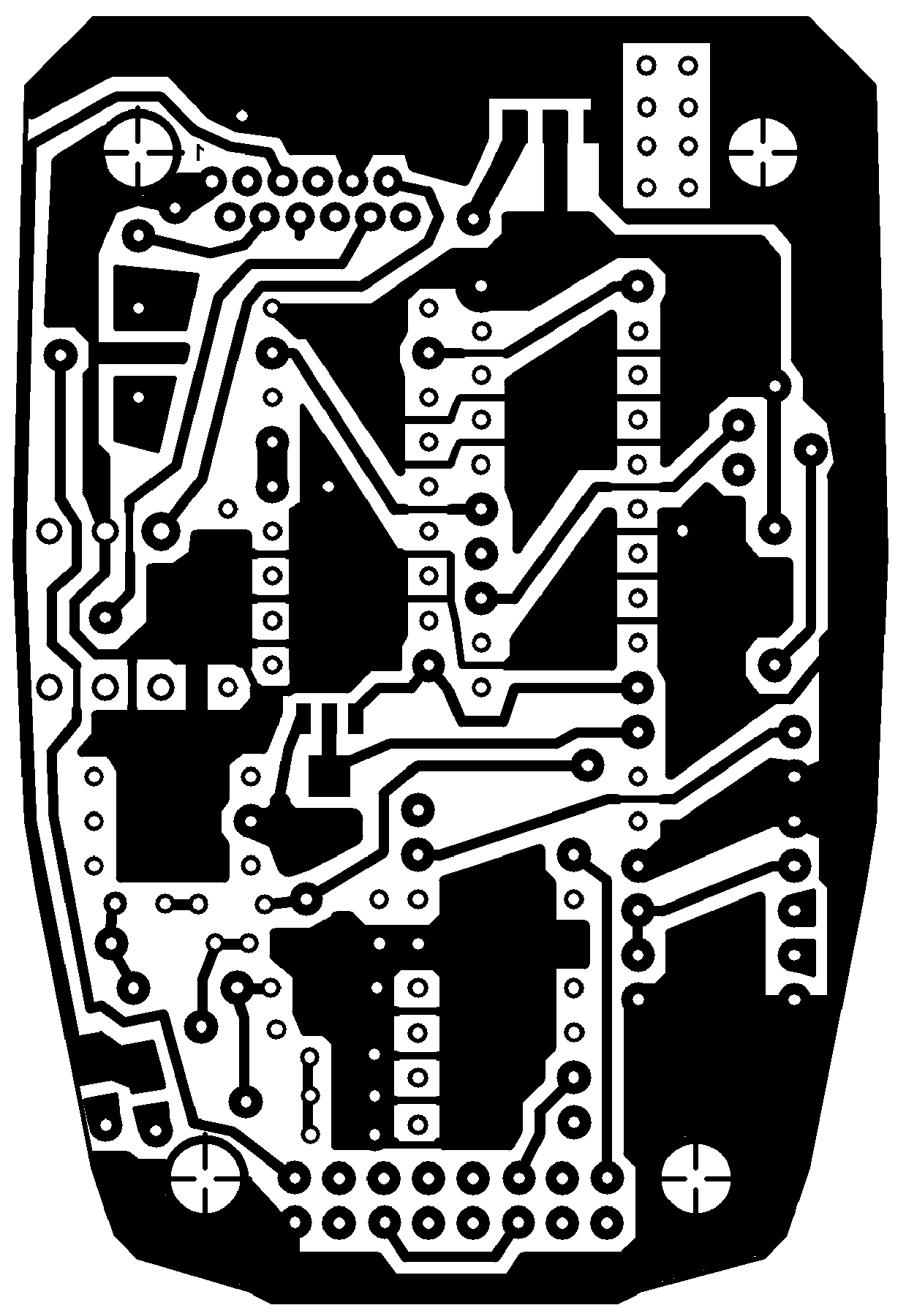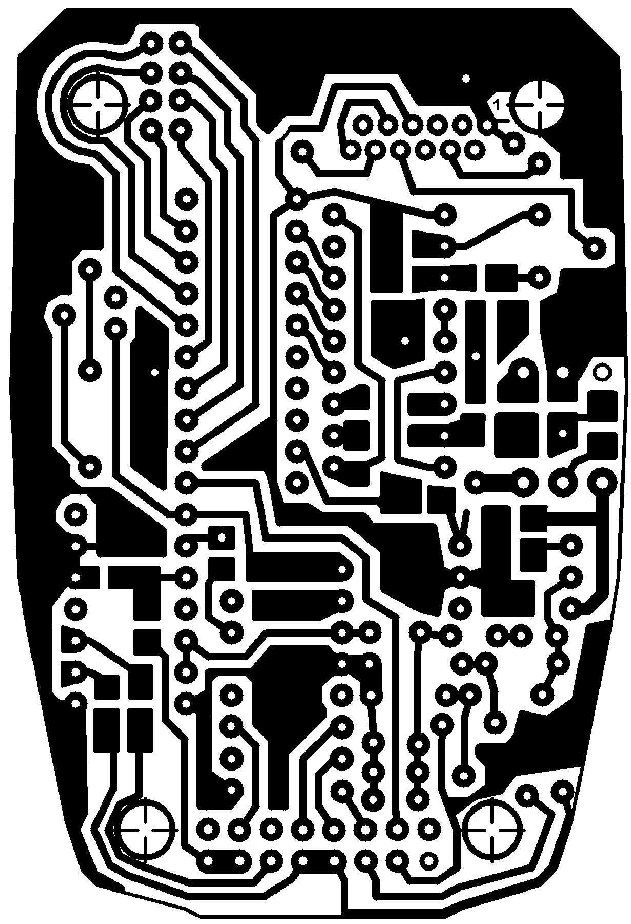 Для его изготовления можно воспользоваться практически любым современным лазерным или струйным принтером. Учитывая, что мы используем в рамках данной статьи позитивный фоторезист, там, где на ПП должна остаться медь, принтер должен рисовать черным. Где не должно быть меди принтер ничего не должен рисовать. Очень важный момент при печати фотошаблона: требуется установить максимальный полив красителя (в настройках драйвера принтера). Чем более черными будут закрашенные участки, тем больше шансов получить великолепный результат. Цвет не нужен, достаточно черного картриджа. Из той программы (рассматривать программы не будем: каждый волен выбирать сам от PCAD до Paintbrush), в которой рисовался фотошаблон, печатаем на обычном листе бумаги. Чем выше разрешение при печати и чем качественнее бумага, тем выше будет качество фотошаблона. Рекомендую не ниже 600 dpi, бумага не должна быть сильно плотной. При печати учитываем, что той стороной листа, на которую наносится краска, шаблон будет класться на заготовку ПП. Если сделать иначе, края у проводников ПП будут размытыми, нечеткими. Даем просохнуть краске, если это был струйный принтер. Далее пропитываем бумагу TRANSPARENT 21, даем просохнуть и фотошаблон готов.