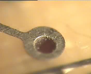 Старайтесь избегать отверстий диаметром менее 0,7 мм. Всегда держите не менее двух запасных сверл 0,8 мм и менее, так как они всегда ломаются именно в тот момент, когда вам срочно надо сделать заказ. Сверла 1 мм и больше намного надежнее, хотя и для них неплохо бы иметь запасные. Когда вам надо изготовить две одинаковые платы, то для экономии времени их можно сверлить одновременно. При этом необходимо очень аккуратно сверлить отверстия в центре контактной площадки около каждого угла ПП, а для больших плат отверстия, расположенные близко от центра. Положите платы друг на друга и, используя центрующие отверстия 0,3 мм в двух противоположных углах и штифты в качестве колышков, закрепите платы относительно друг друга.