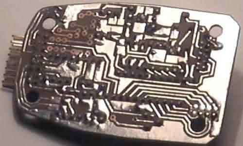 Прежде всего, плату необходимо декапировать, чтобы удалить образовавшийся окисел меди: 2-3 секунды в 5-процентном растворе соляной кислоты с последующей промывкой в проточной воде.