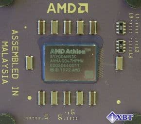 Процессоры отличаются друг от друга лишь частотой шины и множителем — первый, рассчитанный на частоту FSB 100МГц и множитель 12, имеет Ordering Part Number — первая строка маркировки — A1200AMS3B, а второй, рассчитанный на частоту FSB 133 МГц и множитель 9 — A1200AMS3С.