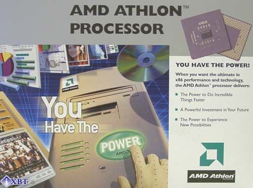 "Процессор с ядром К7 и с именем Athlon дебютировал на рынке в августе 1999 года с частотами 500, 550 и 600 мегагерц, а к марту 2000 года безумная гонка вооружений подняла частоту главного оплота AMD в битве за мировое господство до заветного 1 гигагерца. Однако, после триумфального 700 мегагерцового процессора, чей 512 килобайтный кэш второго уровня работал на максимальной для Athlon частоте в 350 мегагерц, каждый следующий новый Athlon с повышенной на 50 мегагерц частотой давал все меньший прирост по производительности и становился все большим разочарованием.