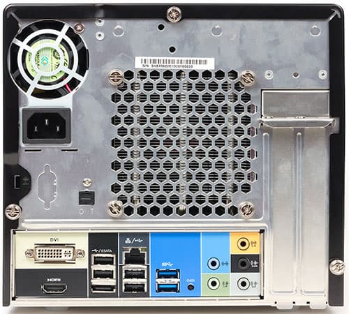А основной набор разъемов, традиционно, располагается на задней панели. Здесь можно обнаружить еще два порта USB 3.0 и четыре USB 2.0, гигабитную сеть, порт eSATA и полный набор разъемов для подключения акустики, включая и выведенный наружу S/PDIF (что порадует обладателей старых ресиверов). Процессорные видеовыходы ограничены DVI-I и HDMI, чего вполне достаточно, поскольку основное назначение системы — игровое, так что в большинстве случаев будет там и дискретная видеокарта со своими выходами. Наружу выведена и кнопка сброса CMOS — нельзя сказать, что такой уж нужный аксессуар (скелет явно ориентирован не на любителей разнообразных экспериментов), но укладывающийся в концепцию «один раз собрал компьютер и забыл». Здесь же размещается стандартный разъем питания, а четверть площади задней стенки, как видим, занимает перфорация фирменной системы охлаждения процессора.