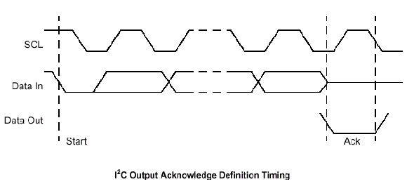 Сигнал подтверждения (ACK или Acknowledge) является своего рода флагом ответа и указывает на успешное выполнение фазы передачи данных. Передающее устройство освобождает шину SDA после того, как выполнена посылка 8bit данных. В течение следующего девятого импульса системного синхросигнала приемник переводит шину в низкое состояние, таким образом подтверждая прием пакета данных.