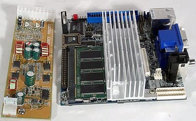 Самая замечательная материнская плата, которую в имеющиеся на рынке корпуса придется устанавливать при помощи системы растяжек, противовесов и автогена, не получит ни малейшего распространения на этом самом рынке. Собственно, отсутствие инфраструктуры было, наверное, основным сдерживающим фактором для популярности платформы Eden форм-фактора mini-ITX сразу после анонса. Со временем этот пробел сам собой восполнился, причем корпуса появились на любой вкус от экстремально-вычурных до вполне уютных маленьких гробиков пресловутого офисного цвета. Возможности расширения функциональности картами и планками, продуманные маломощные блоки питания