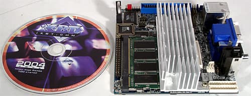 Так или иначе, но проблему зазора между процессором и радиатором приходится как-то решать, и VIA использует для этой цели сравнительно толстую прокладку из частой металлической сетки в несколько слоев, пропитанной каким-то теплопроводящим материалом (термоклеем). Разумеется, мы не можем по одному лишь внешнему виду оценить качество термоконтакта, но очевидно, что положительного влияния уже сам факт наличия прокладки не оказывает. Ждем серийных изделий, в которых VIA обещает использовать другой радиатор, и тогда уже можно будет уверенно говорить о наличии или отсутствии проблем с пассивным охлаждением.