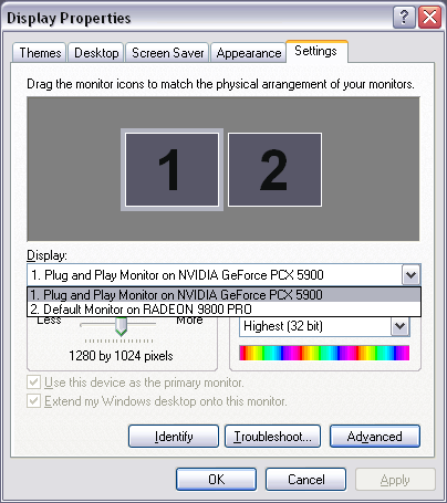 Заметим, что два графических слота на плате с PT880 Pro, в отличие от разъемов под модули памяти, могут быть задействованы и одновременно. Единственное полезное применение этой функциональности поддержка мультимониторных конфигураций (до четырех, если обе видеокарты имеют по два выхода на монитор). В общем, когда-то и два монитора на столе казались помпезной роскошью, а сейчас, возможно, кому-то одной пары уже не хватает. Из маленьких практических радостей мирное сосуществование в системной области панели задач двух видеопроизводителей :)