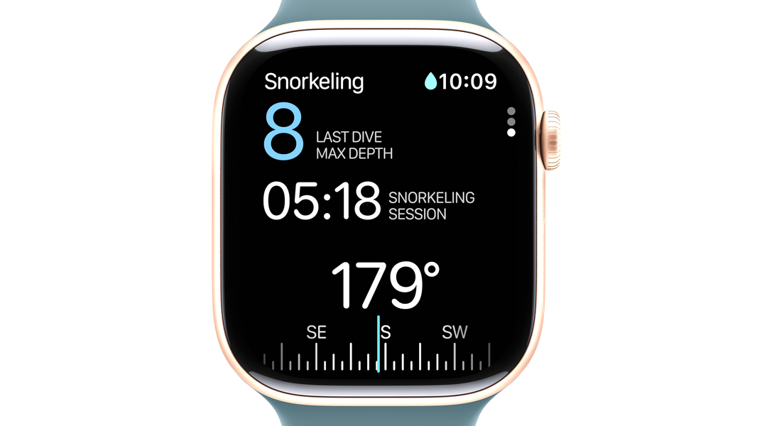 Из других аппаратных новшеств — наличие датчиков глубины погружения в воду и измерения ее температуры, что позволило добавить новый вид спорта — плавание с трубкой. Но, впрочем, для наших широт это не столь уж ценная опция. А вот появление титанового корпуса, конечно, не может не радовать, даже несмотря на существенно более высокую цену. Да, это уже было в Watch Ultra, но сам дизайн флагмана нравится далеко не всем: он слишком брутальный и тяжеловесный, явно мужской. Тогда как Series 10 выглядит куда более универсально.