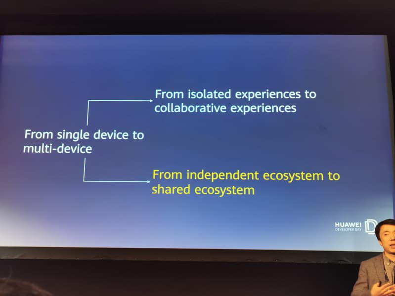 По замыслу разработчиков Huawei, будущее — за изменением парадигмы, где центром цифровой вселенной пользователя является смартфон, как в свое время это было с настольным ПК. Идея в том, что каждый элемент экосистемы дополняет другой, создавая синергию и более эффективное использование компонентов. Пример — дистанционные занятия йогой с тренером, когда компоненты экосистемы понимают, что рядом есть телевизор, предоставляющий более комфортную диагональ для получения визуальных данных, веб-камера имеет бо́льшую разрешающую способность, чем камера в смартфоне, а умная колонка позволит использовать более четкий и понятный звук.