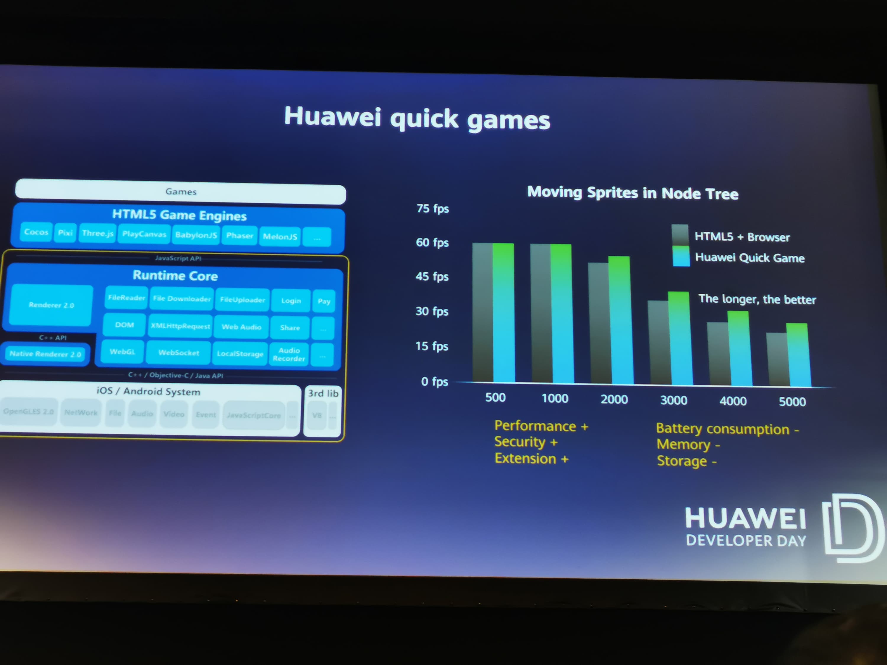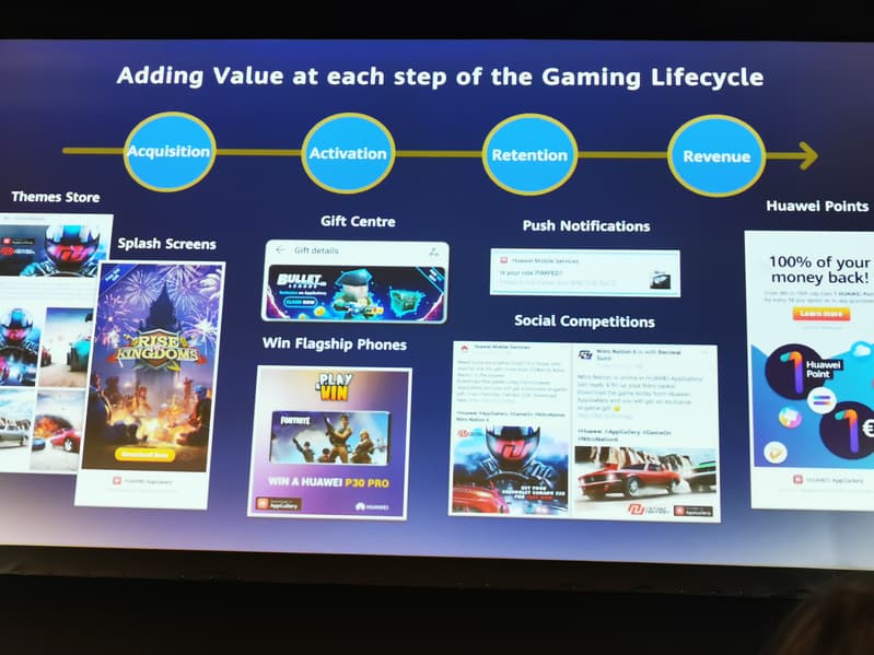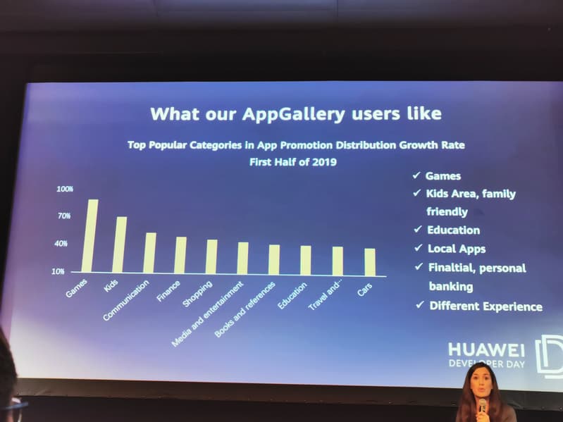 По исследованиям Huawei, основной вид контента, который потребляют пользователи на своих мобильных устройствах — игровой. Значительная часть каждой презентации адресовалась именно разработчикам игр. Декларировалась более простая среда разработки, монетизации, встроенных покупок, вплоть до виртуальных устройств платежа.