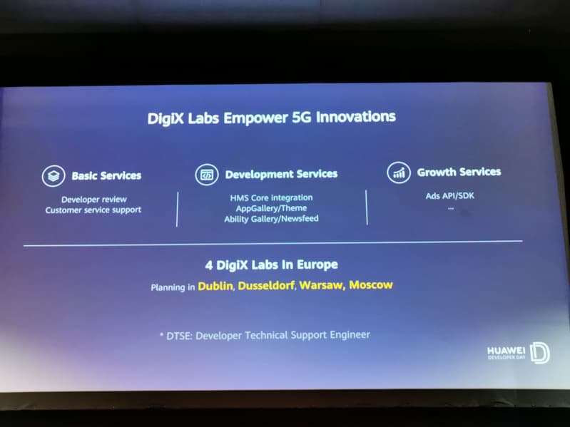 В Huawei готовятся к тому, чтобы осуществлять поддержку на локальном языке разработчиков. Для этого в первом квартале 2020 года будут открыты лаборатории DigiX Labs в Дублине и Дюссельдорфе, а во втором квартале поддержка будет осуществляться в Москве, Мексике, Варшаве, Дубае, Йоханнесбурге и Сингапуре.