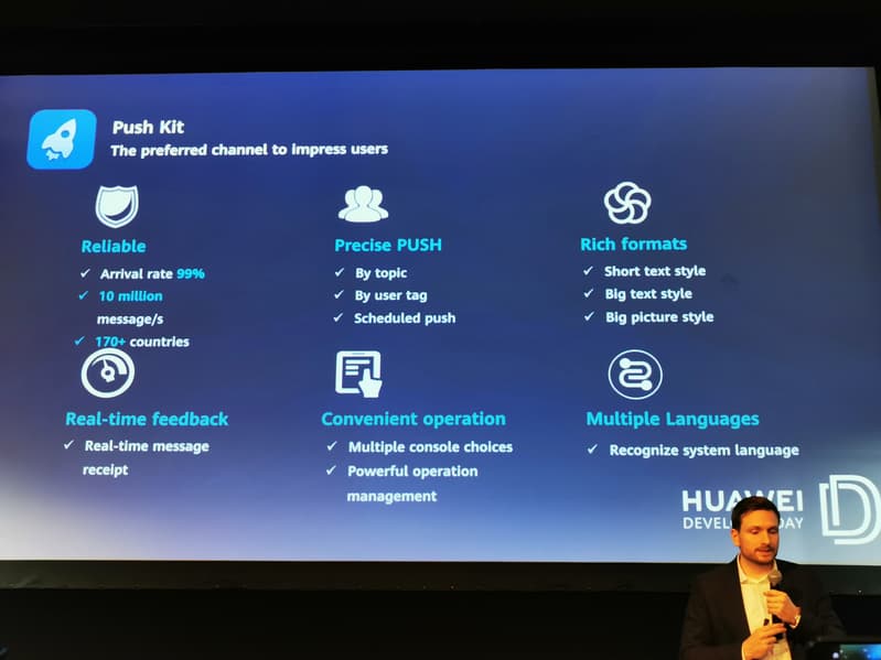 Тогда же был представлен и сервис отправки push-сообщений на устройства пользователей, который, по мнению разработчиков Huawei, выглядит более выигрышно и эффективнее работает с точки зрения привлечения пользовательского внимания.