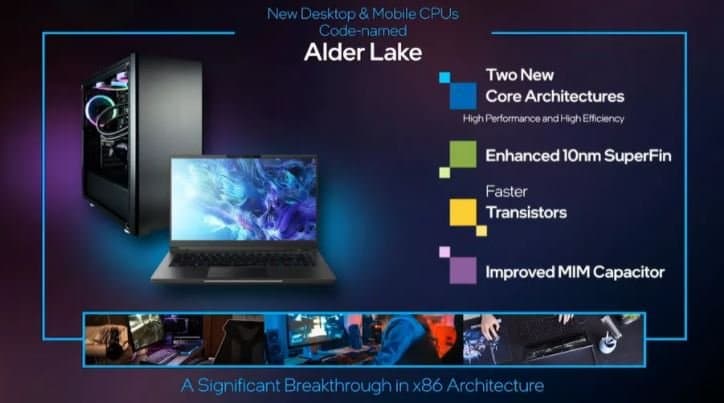 Одновременно компания Intel анонсировала процессоры Core 12 поколения, известные под условным наименованием Alder Lake. Их ключевой особенностью является наличие ядер двух типов: с высокой производительностью и с низким энергопотреблением. Концепция объединения таких ядер давно используется в процессорах Arm. Компания Intel успела опробовать ее в мобильных процессорах Lakefield, выпущенных год назад, а на долю Alder Lake выпало стать первыми процессорами Intel такого рода, предназначенными для настольных компьютеров.