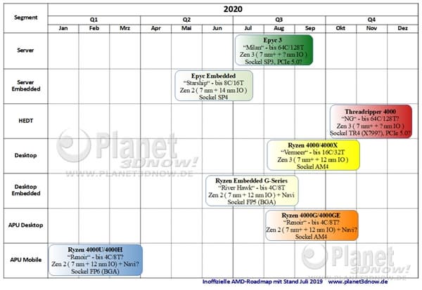 Процессоры AMD Ryzen 3000 для настольных компьютеров только-только появились в продаже, но в одной из июльских новостей уже был назван срок выпуска их преемников. Если верить неофициальным данным, процессоры AMD Ryzen 4000 для настольных ПК выйдут в августе следующего года, Threadripper 4000 — в октябре.