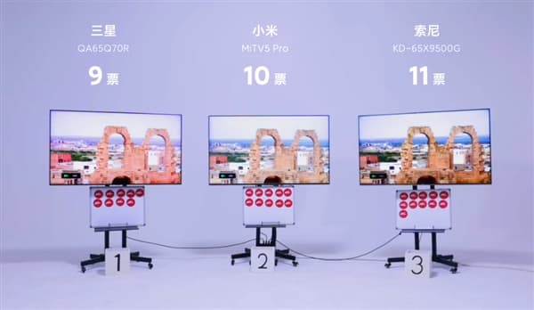 В тестировании приняли участие 30 человек, которым было предложено оценить 65-дюймовые модели Sony X9500G, Samsung Q70R и Xiaomi TV 5 Pro. Голоса распределились почти поровну.