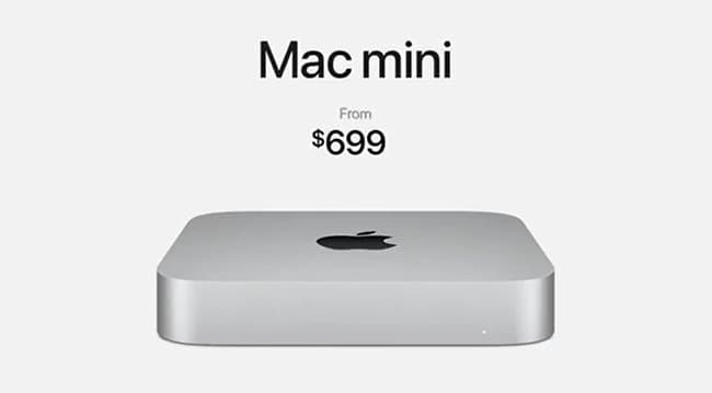 Наряду с двумя мобильными компьютерами был представлен настольный компьютер Apple Mac Mini на платформе Apple M1. По оценке Apple, переход Mac Mini с x86-совместимого процессора на M1 привел к повышению производительности CPU втрое, GPU — в шесть раз. Более того, в Apple уверены, что Mac Mini в пять раз быстрее самого продаваемого ПК с Windows в той же ценовой категории.