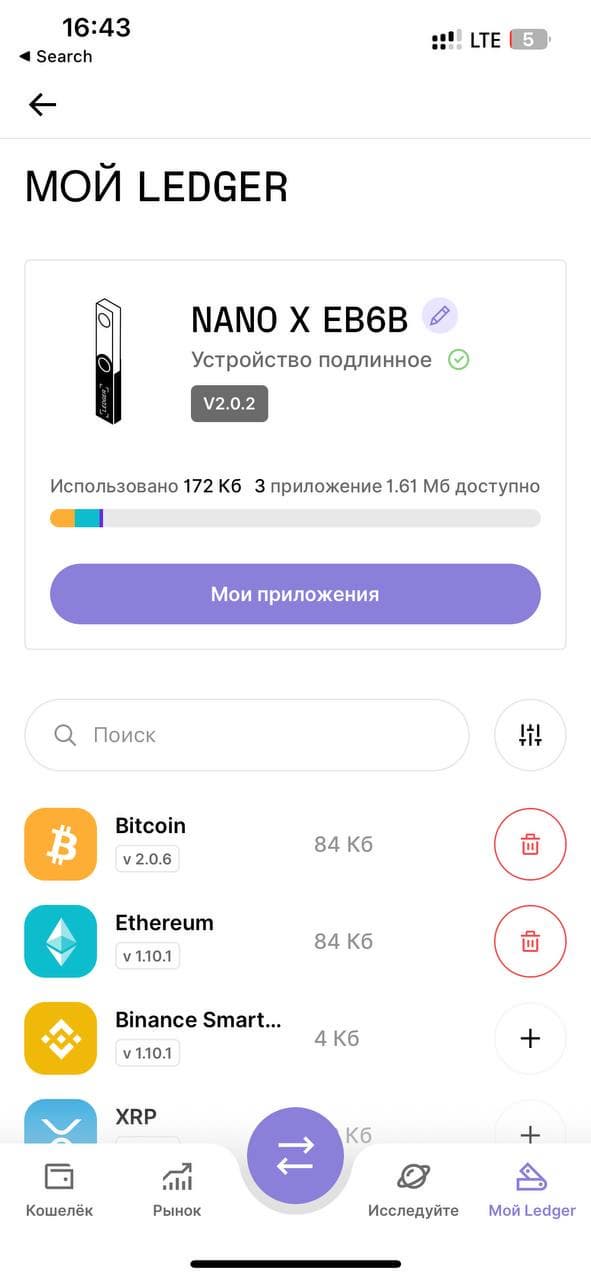 Устанавливать новые приложения в кошелек можно как с мобильного устройства, так и с компьютера. Я рекомендую первый раз все же настроить все через десктопное приложение, поскольку оно чуть более подробное и понятное. А вот уже следить за активами и пользоваться ими можно со смартфона. Кроме того, обновляется прошивка в Ledger Nano X только при подключении по проводу, а это лучше иногда делать, поскольку протоколы безопасности постоянно дорабатываются.