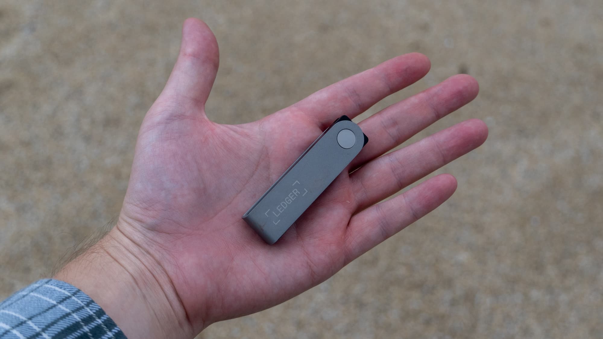 По своим размерам Ledger Nano X — это компактная флешка, которая помещается в руке. Кошелек легко кинуть в рюкзак, правда, так же легко и потерять, так что лучше как раз за шнурок прикрепить внутри рюкзака или сумки.