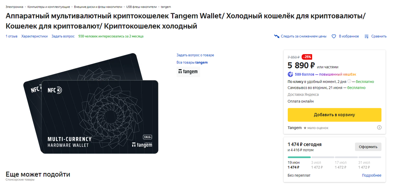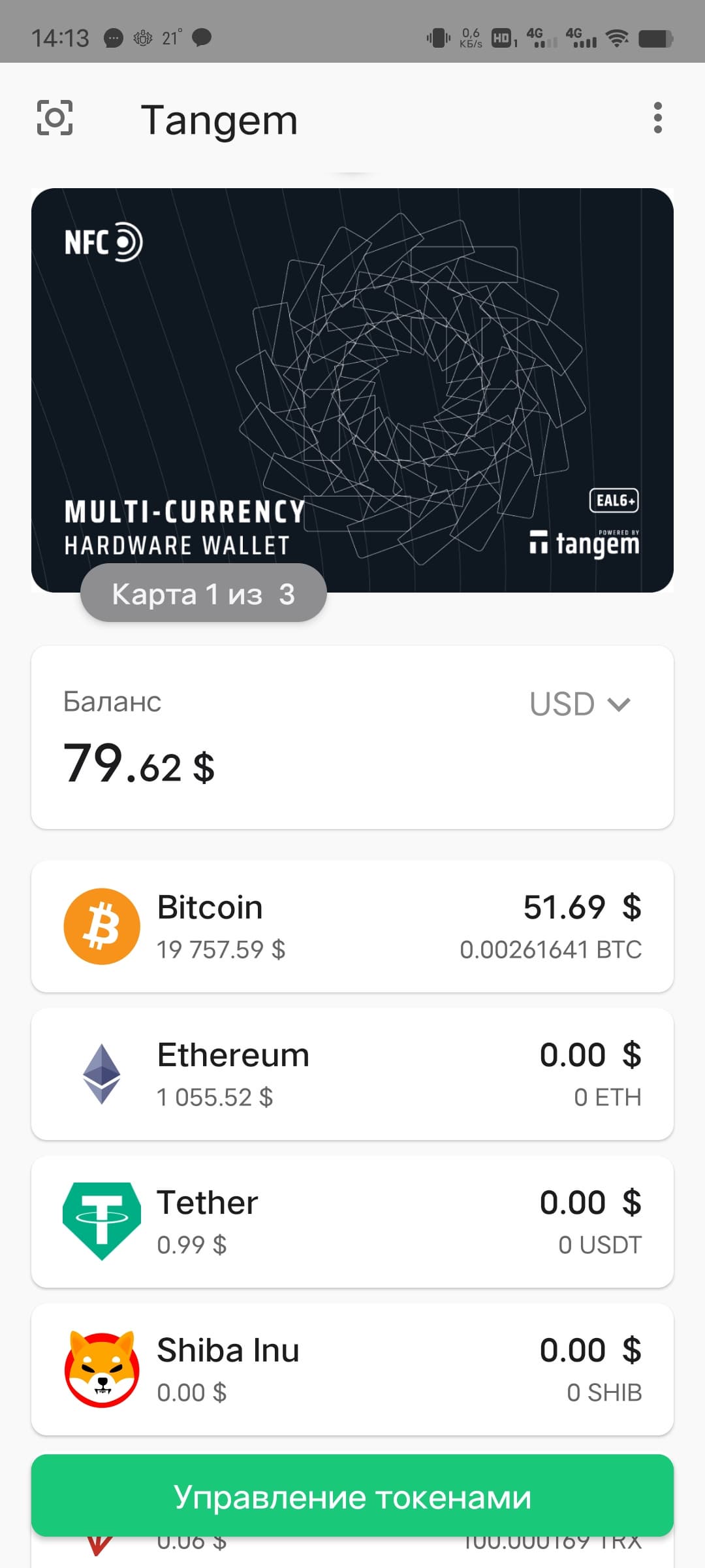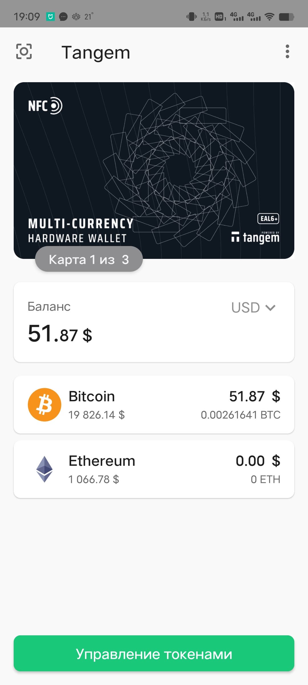Итого: Tangem — это простой и недорогой холодный кошелёк с высокой степенью защиты, простой и быстрой настройкой и удобным ПО.