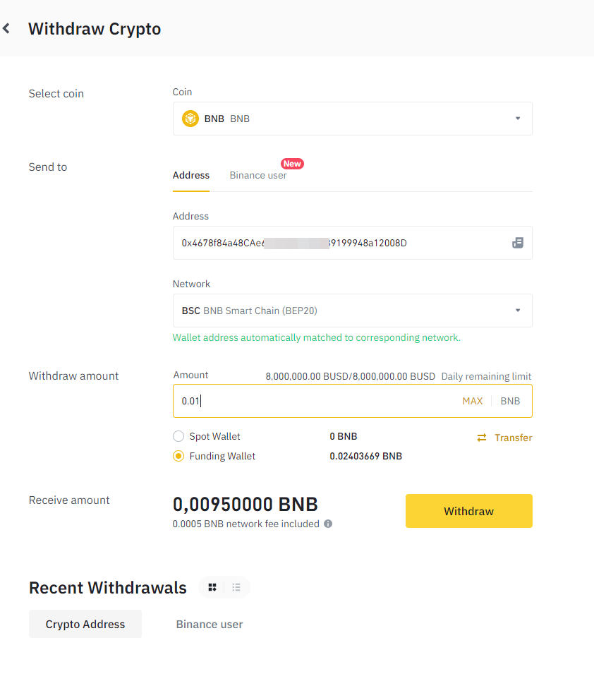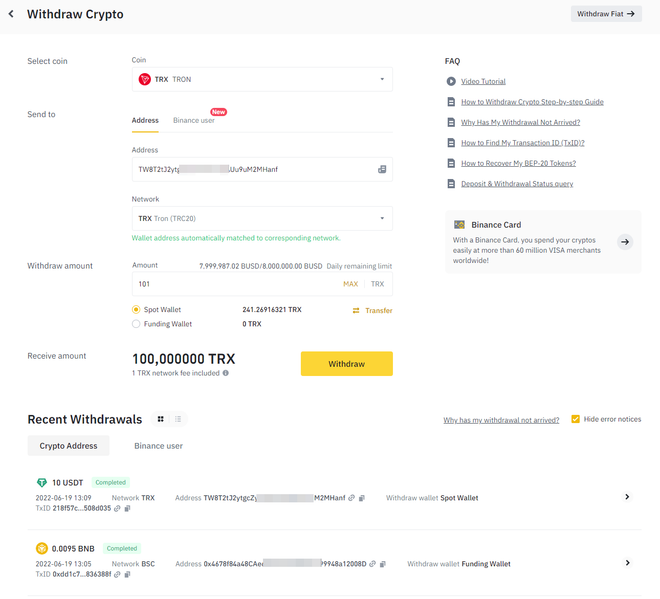 - Как вывести криптовалюту с Binance на холодный кошелек