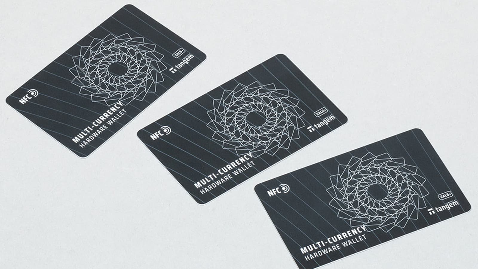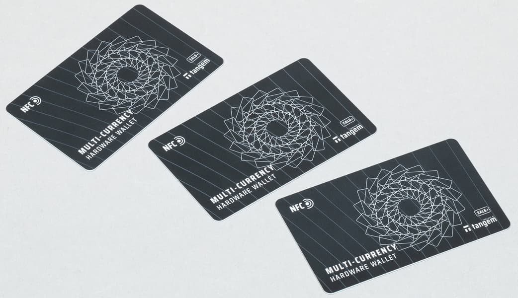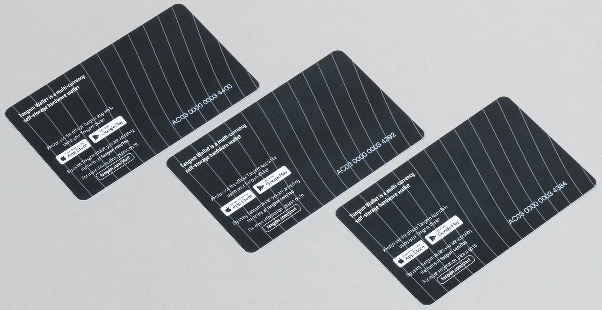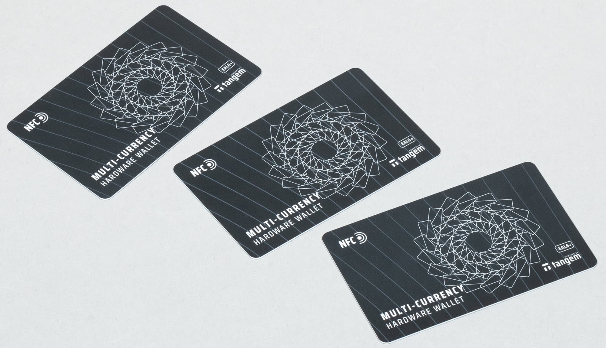 В итоге в Tangem выбрали другой подход. Виду того, что seed-фразы тут нет, восстановить кошелек при утере не получится никак. Но для реализации функции резервирования пользователю предлагаются на выбор комплекты с двумя или тремя картами. Разумеется, вариант с тремя картами в комплекте дороже. Сам криптокошелёк выглядит непривычно — в форме обычной карточки, а не флэшки или «коробочки».