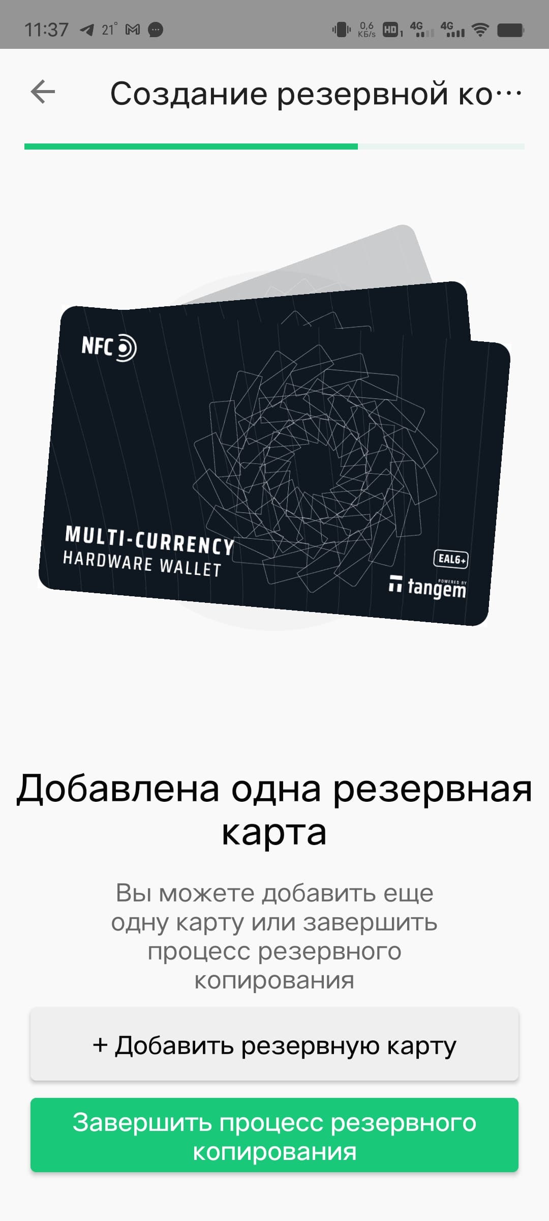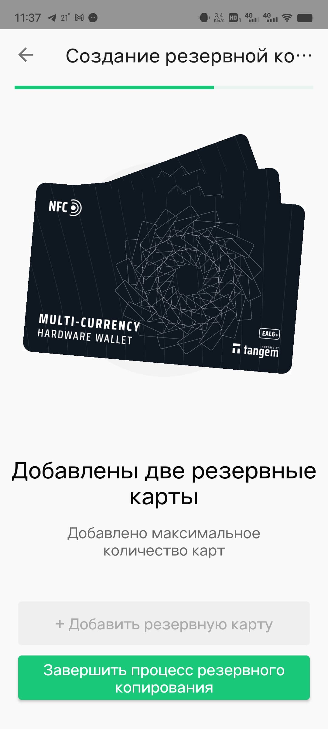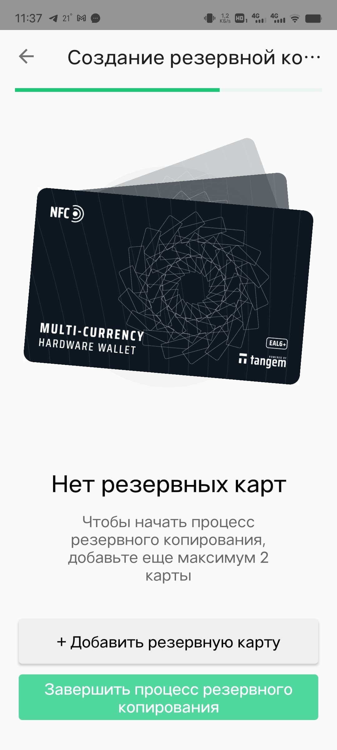 Если будут утеряны обе резервные карты, то восстановить доступ к криптокошельку при забытом пароле будет невозможно. Логика работы с Tangem Wallet подразумевает, что все изменения в кошельке происходят не при использовании seed-фразы, а при «предъявлении» резервной карты.