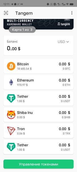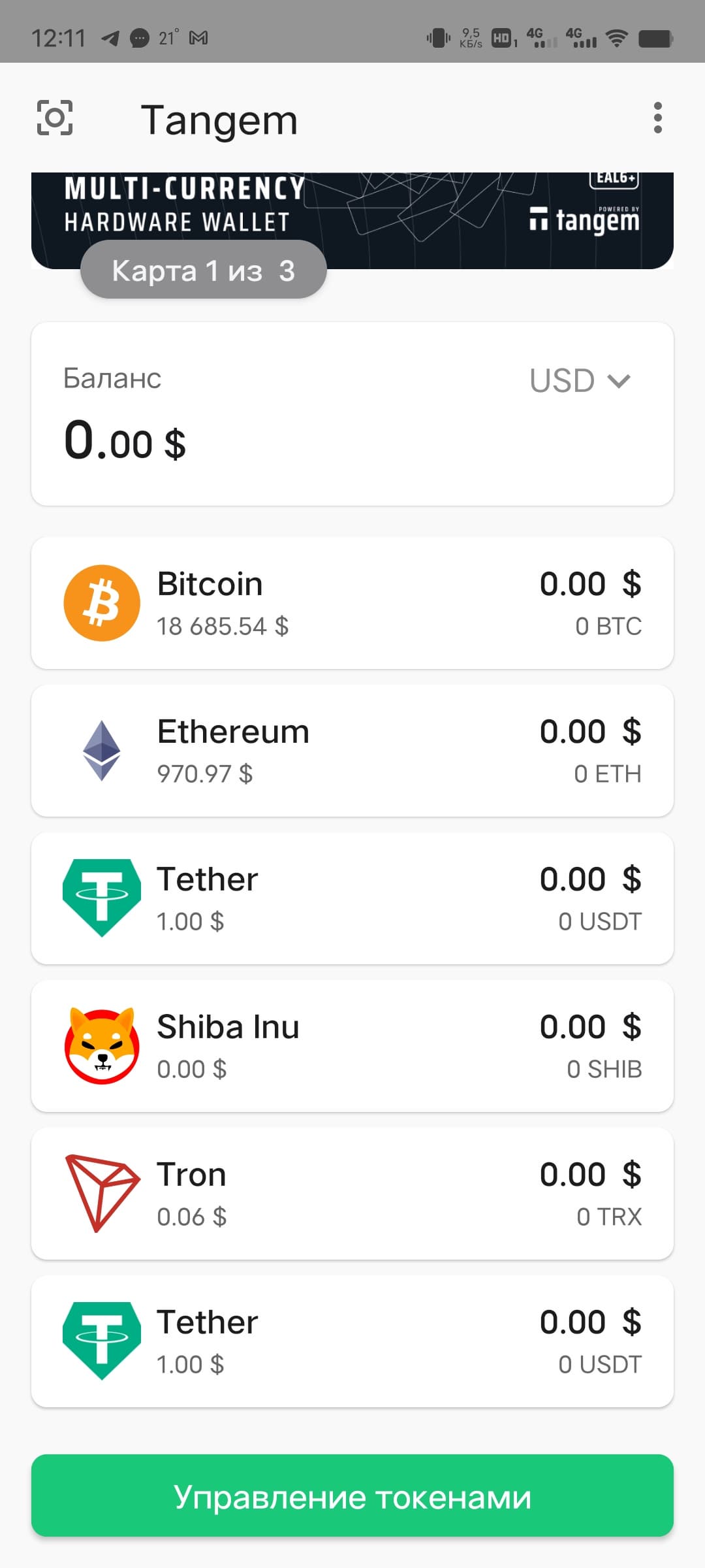 Недавнее обновление Tangem добавило поддержку блокчейна TRON (TRC20) и, соответственно, монеты TRX на его основе. USDT в на блокчейне TRON так же переводится с кошелька на кошелек без проблем.