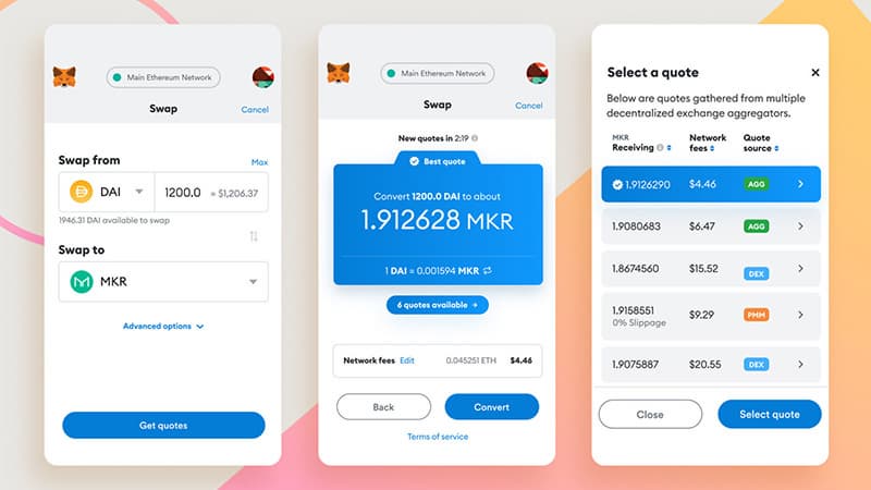 Самым распространенным веб-криптокошельком на сегодняшний день является Metamask. Это некастодиальный электронный бумажник, поставляемый в виде расширения для браузера Google Chrome. На фоне повышенного интереса вокруг DeFi плагин для браузера заинтересовал многих пользователей, поскольку помимо стандартных функций любого криптокошелька Metamask отличается широким выбором универсальных инструментов, предназначенных для доступа к сторонним приложениям. Так, программное обеспечение поддерживает доступ к децентрализованным криптобиржам и обменникам UniSwap, PancakeSwap и 1inch. Цифровое хранилище позволяет оперировать монетами, в основе которых лежат различные блочные цепочки — Ethereum, Binance Smart Chain, Polygon (MATIC), Arbitrum, Avalanche, Harmony и рядом других.