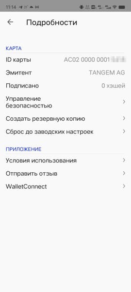 В меню также есть кнопка «Купить», она была актуальна и работала до того момента, пока MasterCard и Visa полноценно работали в России, но на сегодняшний день эта функция недоступна. Представителем компании в разговоре было озвучено, что в Tangem понимают актуальность данной проблемы и уже работают над ее решением.