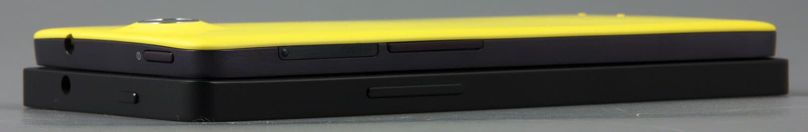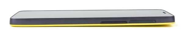 Помимо двух прикрытых магнитными крышками слотов для SIM-карт на боковых гранях еще имеются спаренная клавиша регулировки громкости, а также разъемы: Micro-USB в нижнем торце, и аудиовыход 3,5 мм на верхнем.