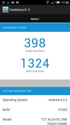По результатам полученных в ходе тестирования данных, система Alcatel OT Idol X продемонстрировала вполне ожидаемые средние показатели производительности, на уровне других ранее протестированных нами устройств, работа которых организована на той же самой платформе. В природе имеется еще и обычная версия MediaTek MT6589 с рабочей частотой ядер не 1,5 а 1,2 ГГц (на ней основан, например, Oppo Mirror R819), и сравнение результатов этих платформ показало закономерное преимущество версии MT6589T. Ну а сравнение с ближайшим конкурентом, Fly Luminor IQ453, выявило практически абсолютное совпадение результатов, что логично, поскольку оба устройства построены на одной платформе.