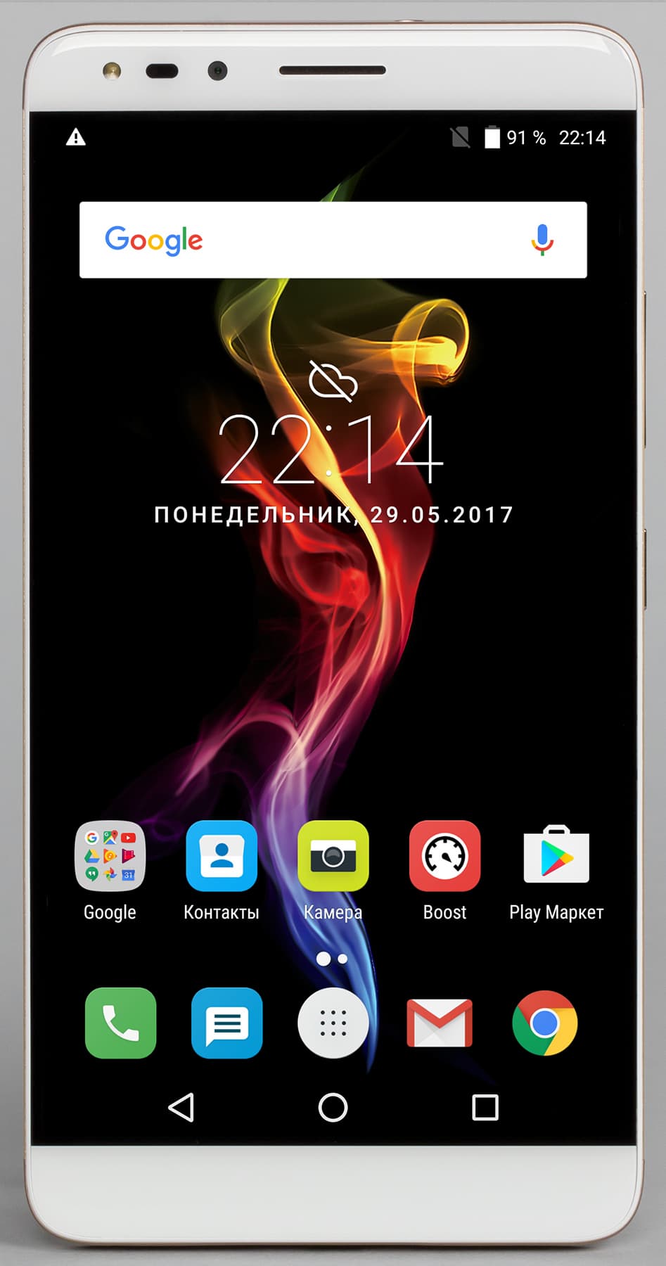В качестве программной платформы используется Google Android не самой уже свежей версии 6.0 без какой-либо собственной оболочки. Есть возможность обновления по воздуху (ОТА). Альтернативного интерфейса, как такового, здесь нет. Тем не менее, значительно расширена работа с жестами, добавлена возможность пробуждения экрана постукиванием, реализовано снятие скриншота жестом трех пальцев и переворот корпуса для приглушения сигнала вызова. Естественно, есть выбор разнообразных альтернативных тем оформления, также можно переназначать местами кнопки в панели и уменьшать рабочую площадь экрана для удобства управления пальцами одной руки.