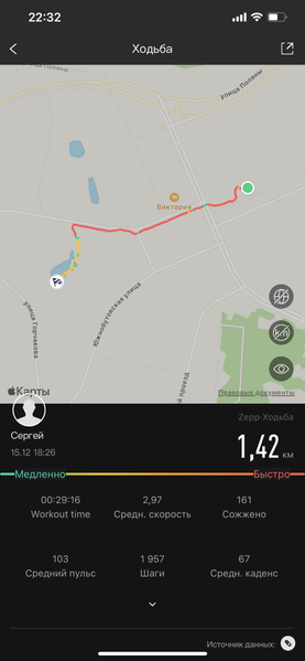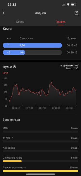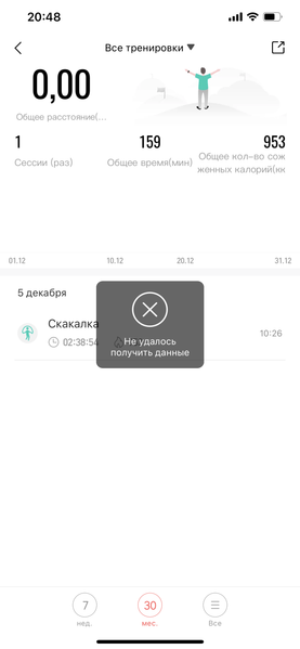 Затем была тренировка с ходьбой, скриншоты с результатами которой представлены выше, и она успешно синхронизировалась, но при попытке обновления окна все равно появлялась надпись »Не удалось получить данные».