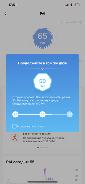 Проблема в том, что у нас отмечались проблемы с синхронизацией. Например, нам почему-то не удалось зафиксировать лыжную тренировку, хотя во время самой тренировки часы работали корректно, и показатель активности PAI изменился соответственно этим данным. На скриншоте ниже слева видно сообщение о повышении PAI, а рядом представлен скриншот, где попытка синхронизации тренировки приводит к сообщению «Не удалось получить данные». Часы при этом были успешно синхронизированы с приложением.