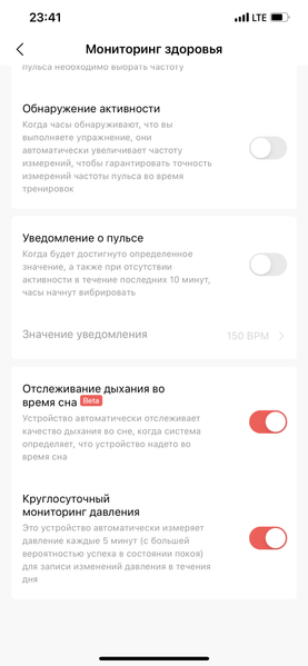 Далее, мы уже отмечали в отношении предыдущих устройств Amazfit и Zepp, что в настройках смартфонного приложения фигурирует неправильный перевод слова pressure. Его перевели как «давление», но это на самом деле не кровяное давление, как можно решить, а уровень стресса. Странно, что такую ошибку разработчики до сих пор не исправили.