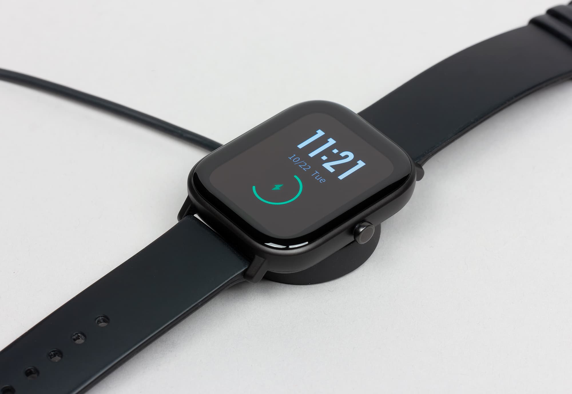Зарядная площадка круглой формы (кстати, абсолютно идентичная таковой от часов Amazfit GTR) присоединяется магнитными контактами к «спинке» часов только в определенном положении, что автоматически исключает возможность сделать что-то не так. Самого сетевого зарядного устройства в комплекте нет, так что придется использовать «зарядку» от смартфона или чего-то другого.