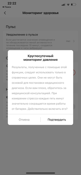 Добавим, что в настройках уже традиционная путаница с переводом термина pressure, которое может означать и кровяное давление (blood pressure), и стресс. На самом деле, кровяное давление гаджет не отслеживает.
