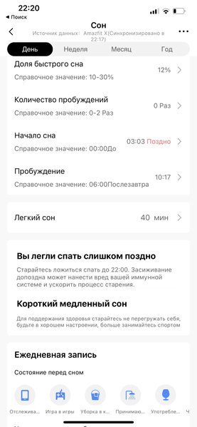 В целом, сон и пульс измеряются автоматически, но короткий дневной сон браслет угадывает не всегда.