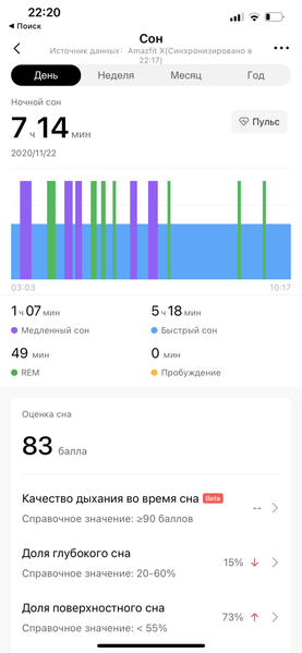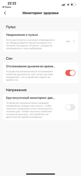Зато вроде бы может фиксировать качество дыхания во время сна, если активировать соответствующую опцию, но на момент тестирования она была в beta-режиме и в статистике по сну почему-то не отображалась.
