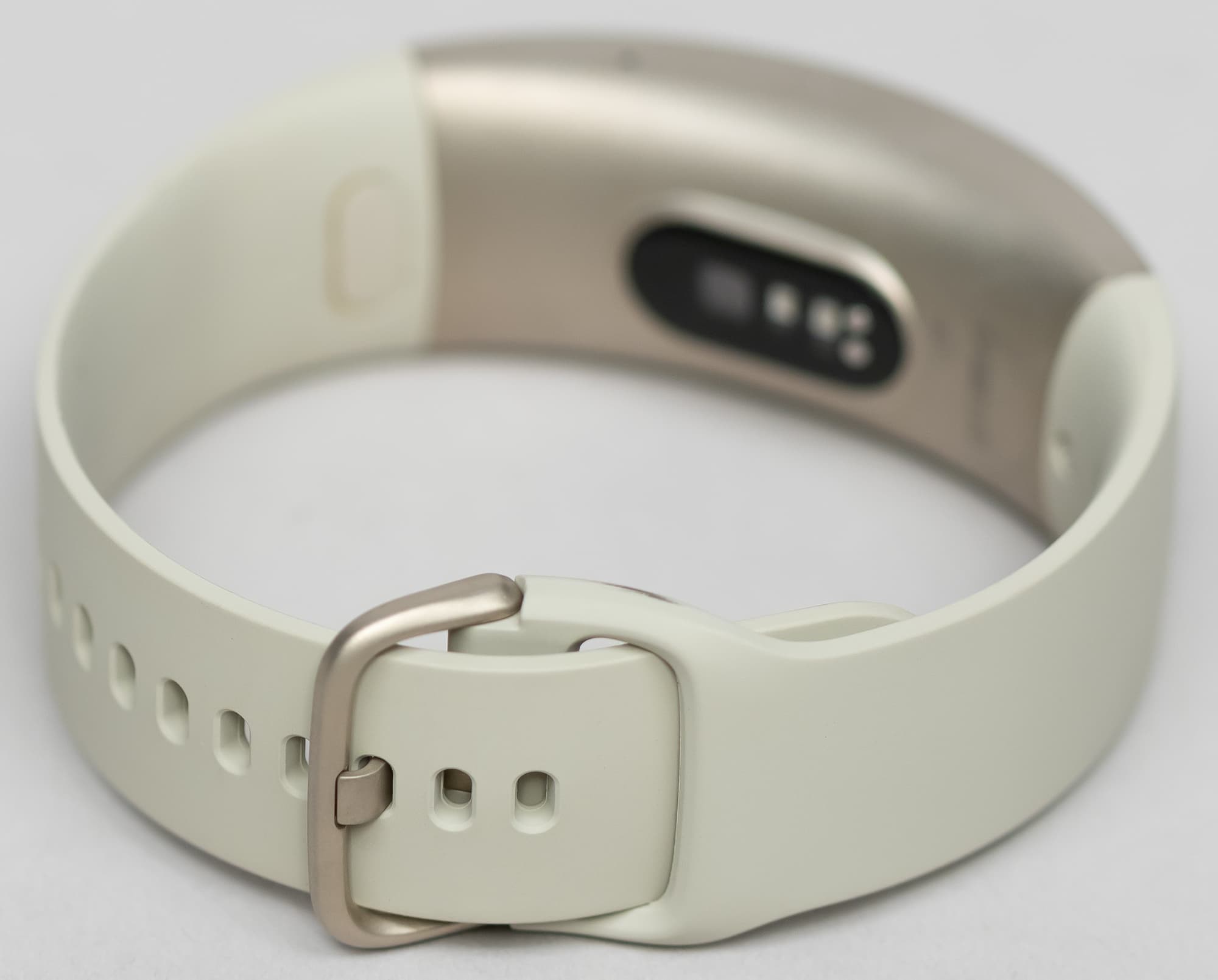 Ремешок съемный только отчасти: одна половинка отсоединяется легко, с помощью нажатия кнопки под ней, другая же непонятно зачем закреплена на гвоздик. Но даже у единственной съемной половинки крепление — нестандартное, подходящее только для этого устройства. Сам по себе ремешок в целом неплох, и но его цвет — кремовый, светло-серый — кажется не самым удачным решением. Он и не столь эффектный, как огромный дисплей, и не такой строгий, чтобы носить его с костюмом. Пожалуй, просто черный вариант был бы лучше. А еще лучше, если бы производитель предусмотрел несколько типов ремешков и стандартное крепление.