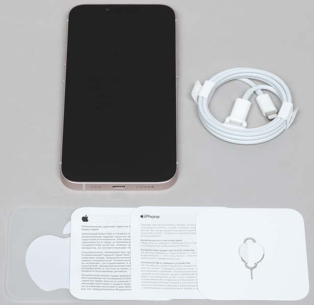 Внутри же все по-прежнему. В комплекте есть кабель Lightning/USB-C, наклейка в виде логотипа Apple и ключик для извлечения SIM-карты.